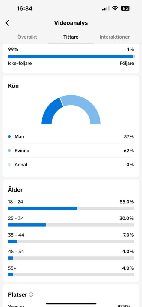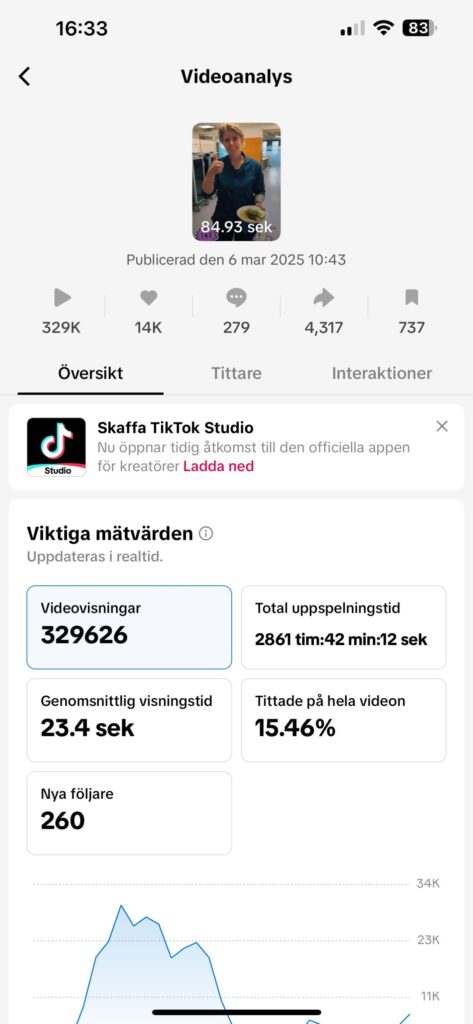 Jag skulle vilja säga att TikTok-inlägget hunnit springa flera varv runt jorden innan Instagram ens hunnit få på sig skorna, men som ni ser så kan man även med hashtaggar och algoritmer styra att det främst är i Sverige som videon når ut vilket är ett viktigt mål för mig.